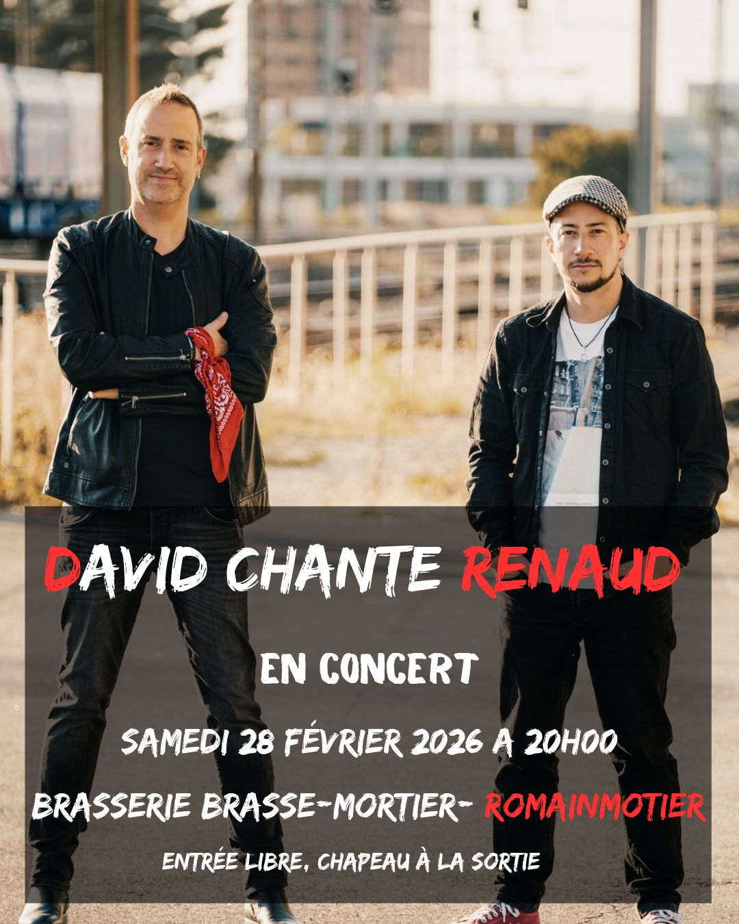La soirée du samedi 28 février se poursuivra en musique à la brasserie de Romainmôtier avec un second rendez-vous dès 20h00. Après les rythmes des percussions, place à la chanson française et à l’univers tendre, rebelle et profondément humain de Renaud.